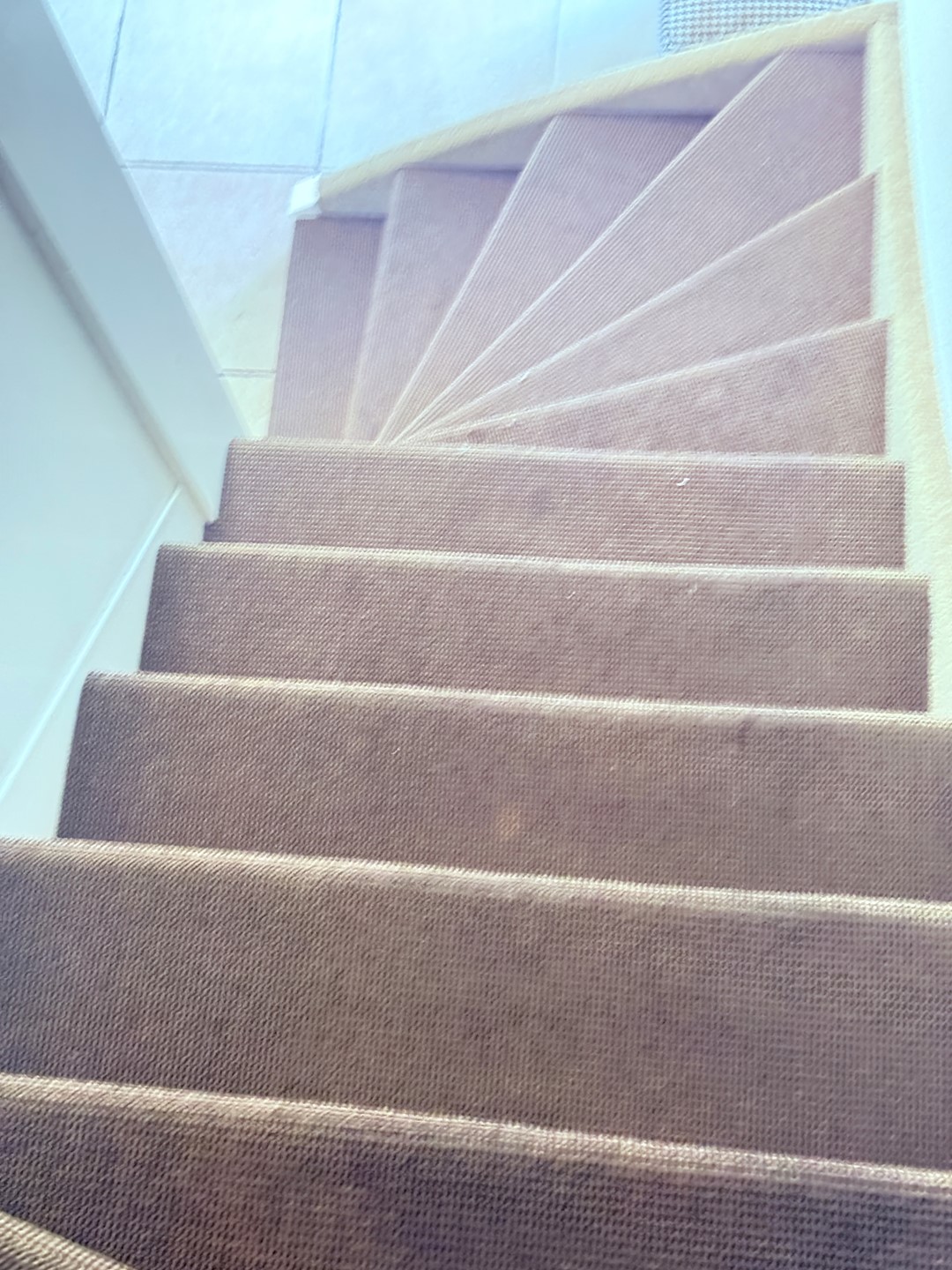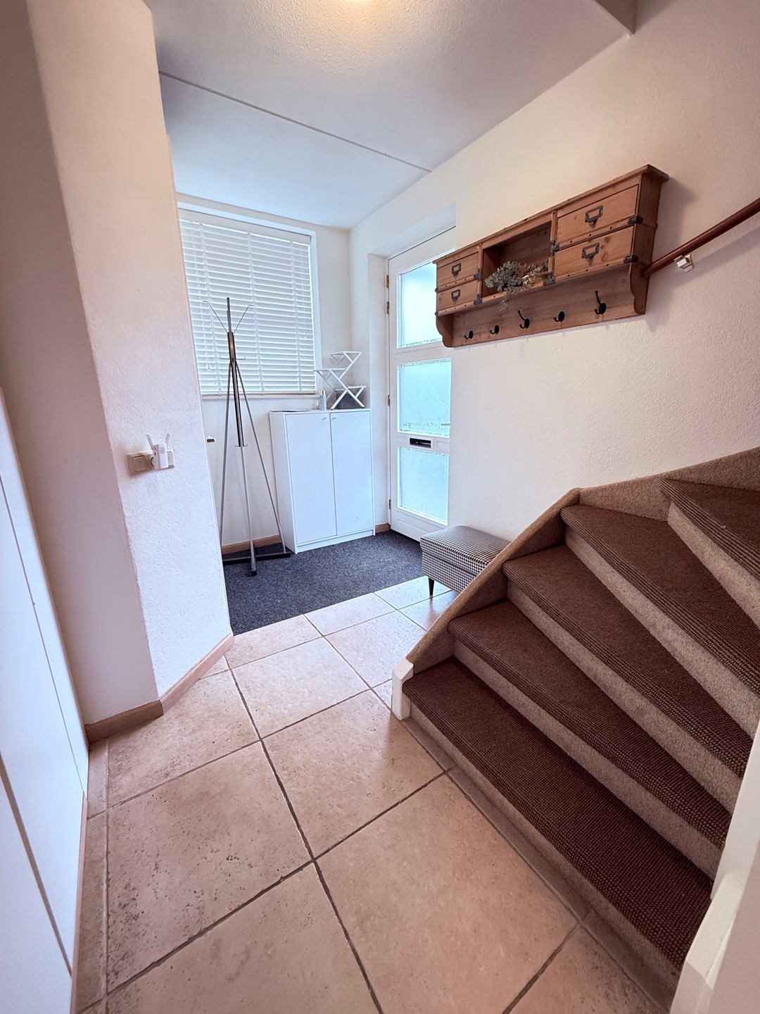 Entrance hall with meter cupboard, fiber optic connection, modern toilet, and staircase