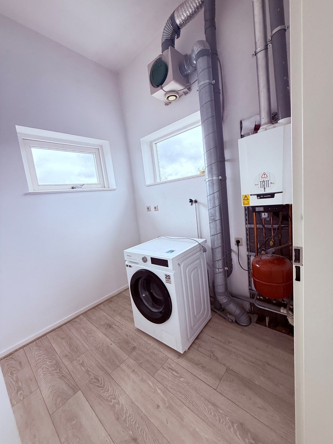 Technical area with central heating system, mechanical ventilation, solar panel inverter, and washing machine connection