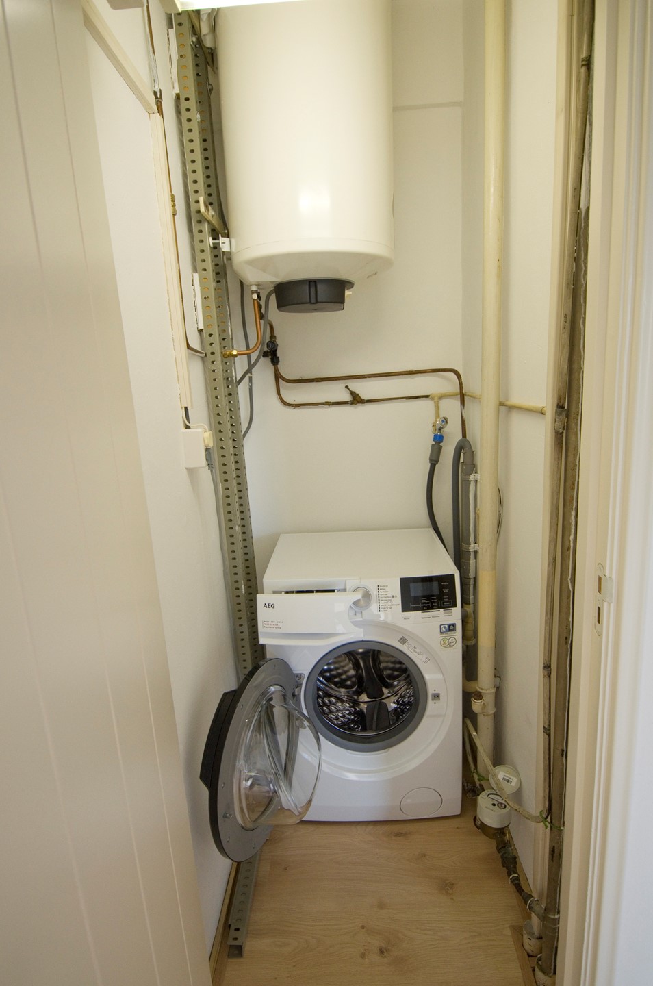 Hallway: Long entrance corridor with a meter cupboard.